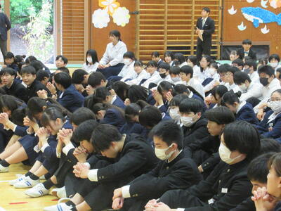 生徒たちは、2週間後の合唱本番に向けて、入退場も含めた中間発表をしました。11月2日のかしわ祭での発表が楽しみです。